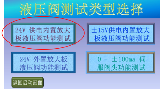 4、點(diǎn)擊“24V供電內(nèi)置放大板液壓閥功能測(cè)試”,進(jìn)入?yún)?shù)設(shè)定畫(huà)面;
