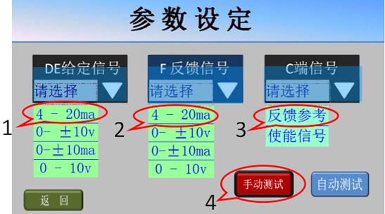 7、手動(dòng)測(cè)試基本正常后,點(diǎn)擊屏幕左下方的返回鍵,返回參數(shù)設(shè)定畫(huà)面;